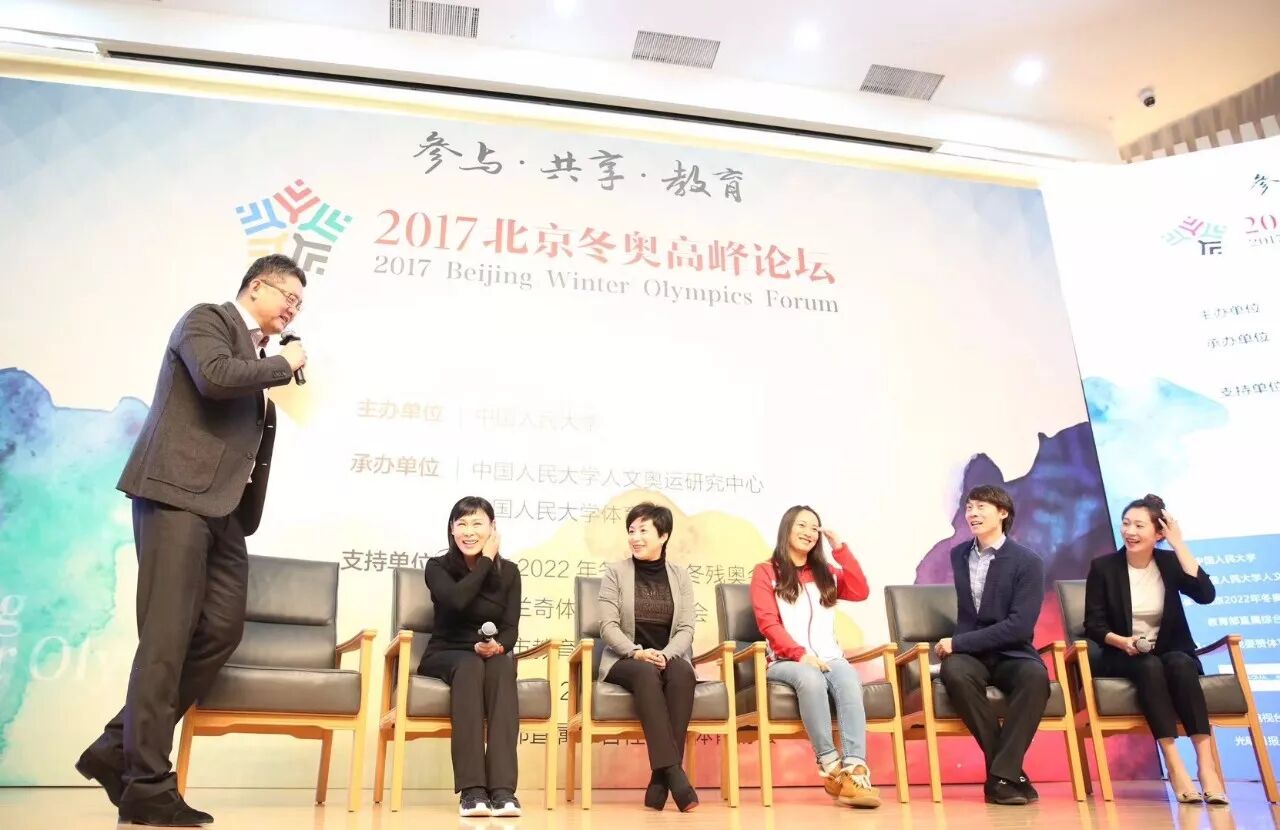 论坛还设置了“冬奥明星谈”的环节,邀请了冬季奥林匹克运动明星运动员叶乔波、郭丹丹、李妮娜、佟健、张丹就冬季奥林匹克运动普及与教育主题进行座谈,CCTV5主持人人大校友张斌主持了该环节。