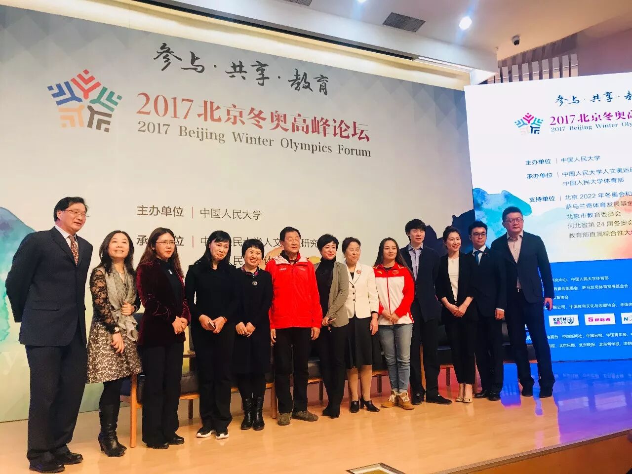 2017年11月25日北京时间上午9点,为贯彻落实关于2022冬奥会的指示精神,推动大众积极参与奥运及冬季冰雪运动,中国人民大学人文奥运研究中心今日举办“参与·共享·教育——2017北京冬奥高峰论坛 ”。国际奥委会副主席萨马兰奇先生以及来自北大与人大的专家嘉宾发表了主题演讲,叶乔波、李妮娜等一众冬奥明星在现场分享了自己的冬奥经历以及各自在体育产业中的尝试。李妮娜谈及的环球飞雪冰雪运动学校正是本次论坛的合作方之一。